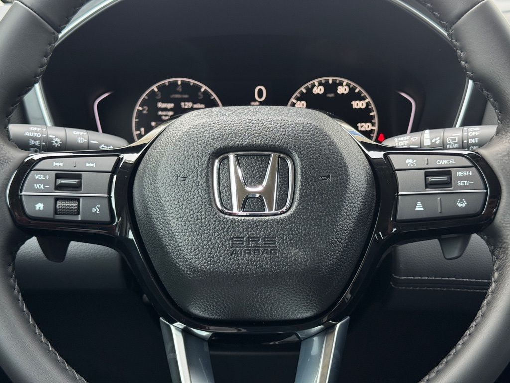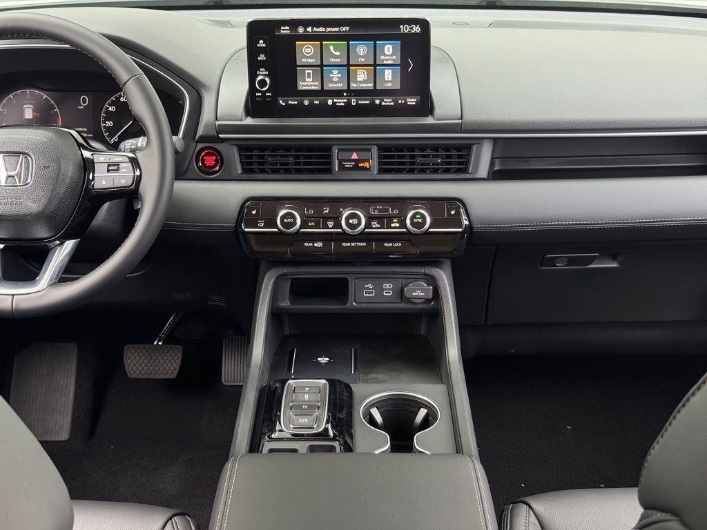 usXM, Apple CarPlay/Android Auto, Auto High-beam Headlights, Auto-dimming Rear-View mirror, Automatic temperature control, Blind Spot Information (BSI) System warning, Brake assist, Bumpers: body-color, Delay-off headlights, Driver door bin, Driver vanity mirror, Dual front impact airbags, Dual front side impact airbags, Electronic Stability Control, Emergency communication system: HondaLink Assist, Exterior Parking Camera Rear, Four wheel independent suspension, Front anti-roll bar, Front Bucket Seats, Front Center Armrest, Front dual zone A/C, Front fog lights, Front reading lights, Fully automatic headlights, Garage door transmitter: HomeLink, Heated door mirrors, Heated Front Bucket Seats, Heated front seats, Illuminated entry, Knee airbag, Lane departure: Lane Keeping Assist System (LKAS) active, Leather Seat Trim, Low tire pressure warning, Memory seat, Occupant sensing airbag, Outside temperature display, Overhead airbag, Overhead console, Panic alarm, Passenger door bin, Passenger vanity mirror, Power door mirrors, Power driver seat, Power Liftgate, Power passenger seat, Power steering, Power windows, Radio data system, Radio: 245-Watt Audio System, Rear air conditioning, Rear anti-roll bar, Rear reading lights, Rear seat center armrest, Rear window defroster, Rear window wiper, Reclining 3rd row seat, Remote keyless entry, Security system, SiriusXM, Speed control, Speed-sensing steering, Speed-Sensitive Wipers, Split folding rear seat, Spoiler, Steering wheel mounted audio controls, Tachometer, Telescoping steering wheel, Tilt steering wheel, Traction control, Trip computer, Turn signal indicator mirrors, Variably intermittent wipers, Wheels: 18" Pewter Gray Machined Face, AWD.