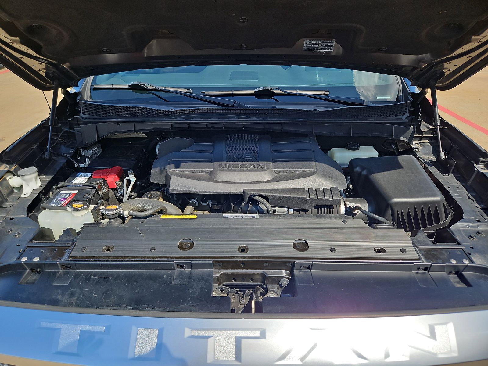 rior, the Titan Platinum Reserve is powered by a robust 5.6L V8 DOHC 32V engine, delivering an impressive 400 horsepower and 9-speed automatic transmission. With a rear-wheel-drive configuration, this Titan delivers a smooth and responsive ride, while achieving an impressive fuel efficiency of 16 MPG in the city and 21 MPG on the highway.