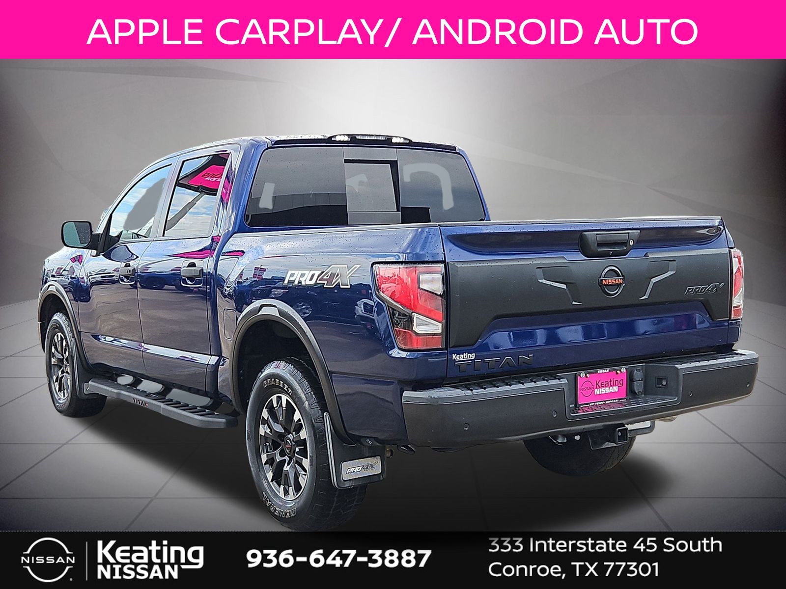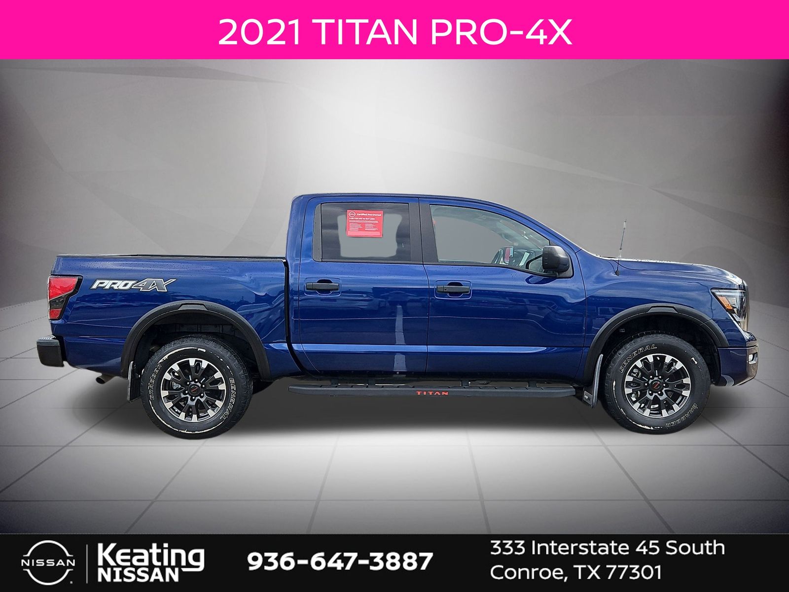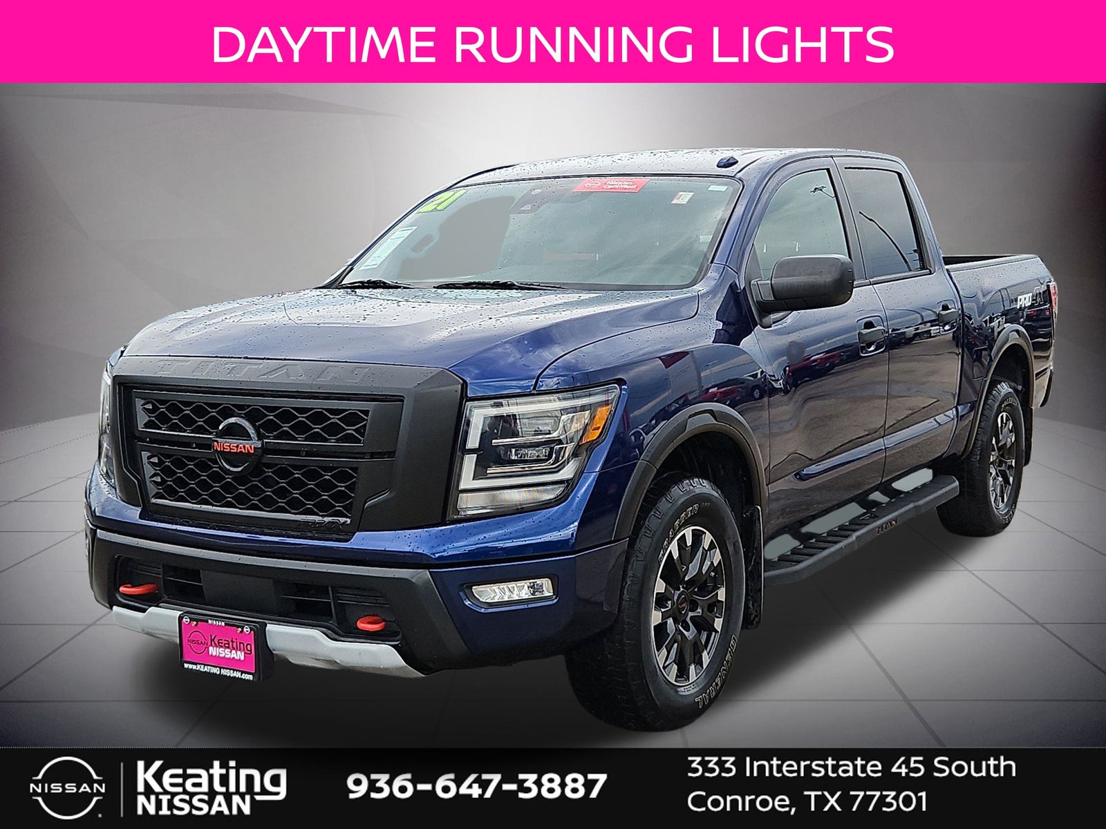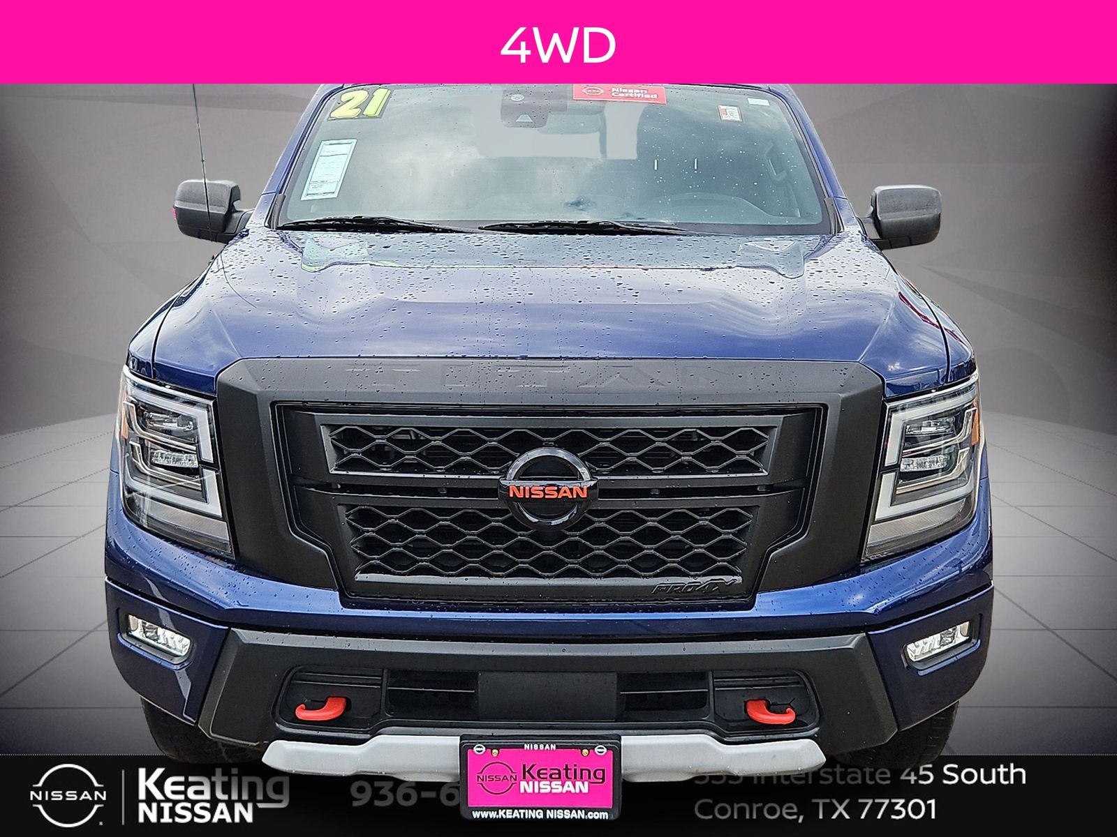 VOICE ACTIVATED NAVIGATION, APPLE CARPLAY/ ANDROID AUTO, BLUETOOTH HANDSFREE CALLING, DAYTIME RUNNING LIGHTS, 4WD, Powerful, rugged, and ready for anything, this 2021 Nissan Titan PRO-4X in Deep Blue Pearl Metallic with Black Interior blends off-road capability with premium comfort. Designed to handle the toughest challenges, the Titan PRO-4X delivers advanced technology, safety, and bold styling, making it a standout choice for truck enthusiasts. Entertainment Features NissanConnect infotainmen