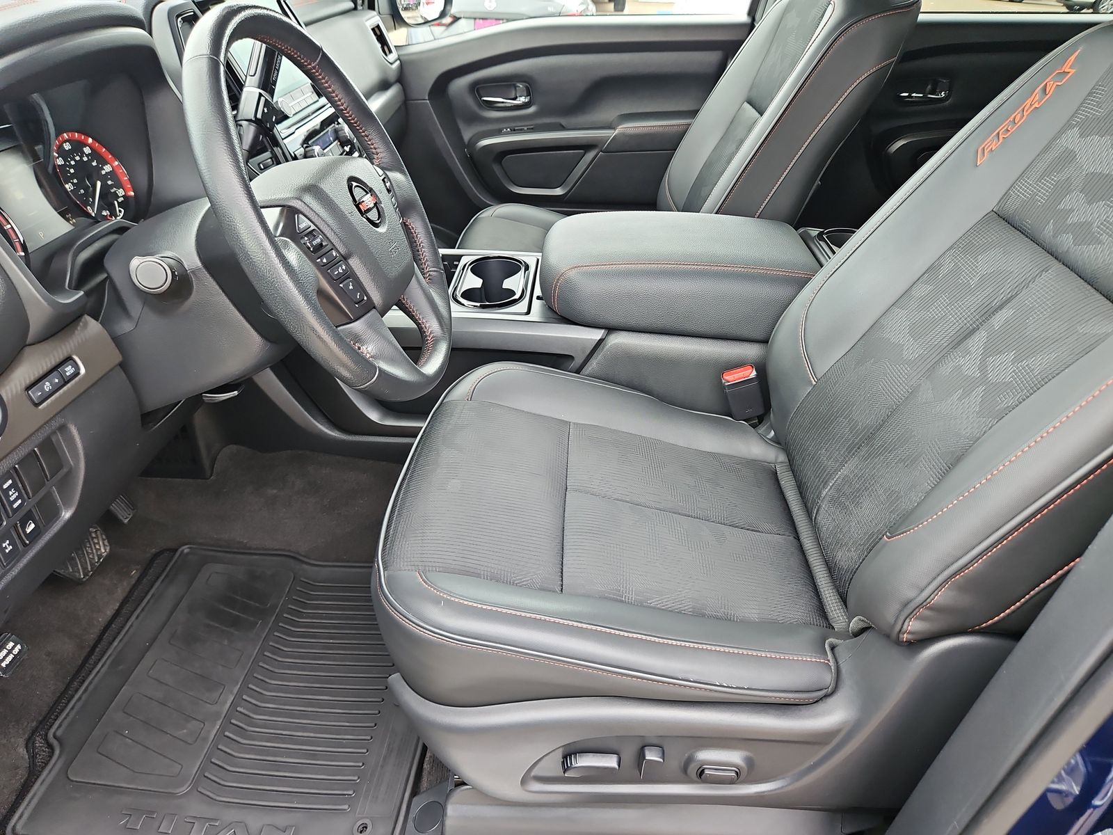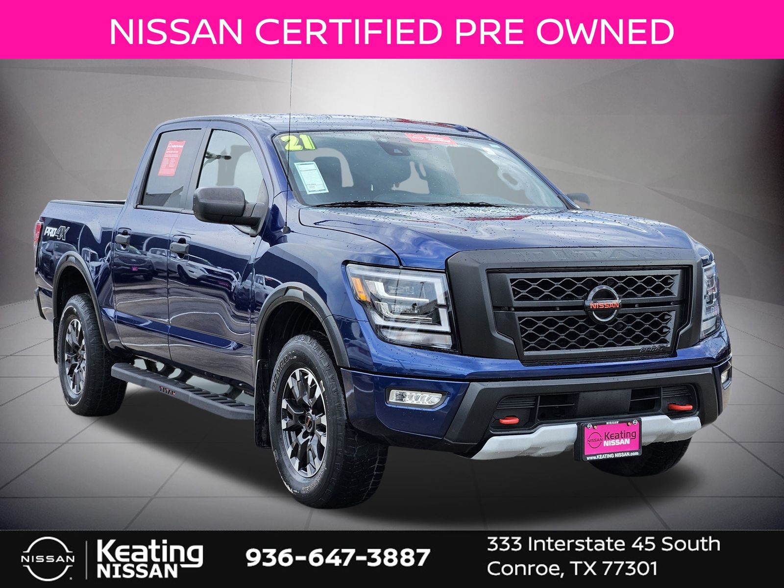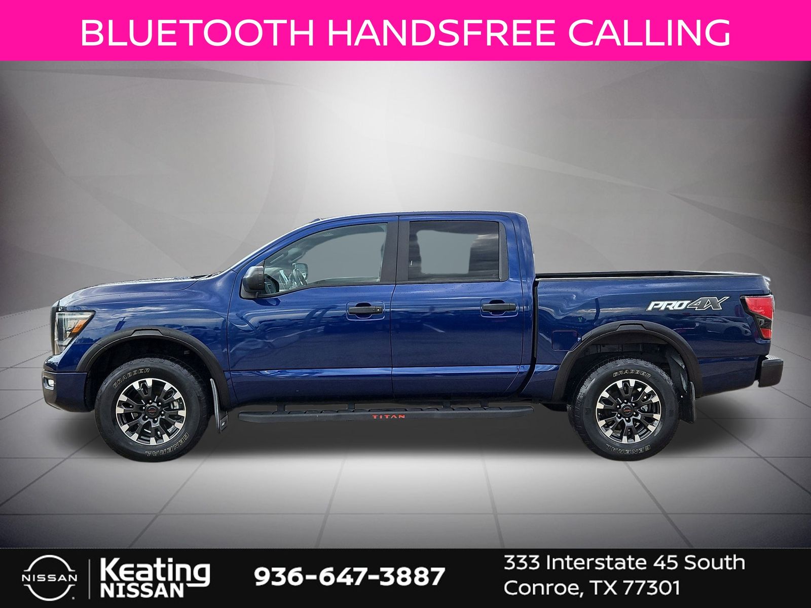 system with 9-inch touchscreen Apple CarPlay & Android Auto Premium Fender audio system with 12 speakers Bluetooth hands-free calling and streaming audio SiriusXM Satellite Radio compatibility USB ports and auxiliary input Voice recognition technology Safety Features Nissan Safety Shield 360 Automatic Emergency Braking with Pedestrian Detection Blind Spot Warning Rear Cross Traffic Alert Lane Departure Warning High Beam Assist RearView Monitor Front and Rear Sonar System Standard Features 5.6L Endurance V8 engine with 400 horsepower 9-speed automatic transmission Shift-on-the-fly 4x4 system Bilstein off-road performance shocks Skid plates for underbody protection LED headlights with signature Daytime Running Lights 18-inch alloy wheels with all-terrain tires Intelligent Key with Push Button Start Dual-zone automatic climate control Heated front seats with power adjustment Mechanical Features 5.6L DOHC V8 engine with Direct Injection Gasoline (DIG) 9-speed electronically controlled automatic transmission Electronic locking rear differential 4-wheel drive with selectable drive modes Trailer brake controller with tow/haul mode 4-wheel disc brakes with ABS Hill Descent Control Electronic Brake-force Distribution (EBD) Oil pan skid plate Engine-speed-sensitive power steering Why Shop at Keating Nissan of Conroe, Texas? Wide selection of quality pre-owned and new vehicles Transparent pricing with no hidden fees Expert financing options for every budget Certified Nissan technicians and state-of-the-art service center Customer-first approach with personalized care Convenient location serving all of Greater Houston Fast, hassle-free buying process Generous trade-in offers Community-trusted dealership with long-standing reputation Over 1,500 glowing customer reviews on Google One happy customer, James T. (July 10, 2025), shared: "The team at Keating Nissan of Conroe went above and beyond to make my truck buying experience smooth and stress-free. The staff was knowledgeable, honest, and treated me like family. I absolutely love my Titan and highly recommend this dealership!". Odometer is 6841 miles below market average!