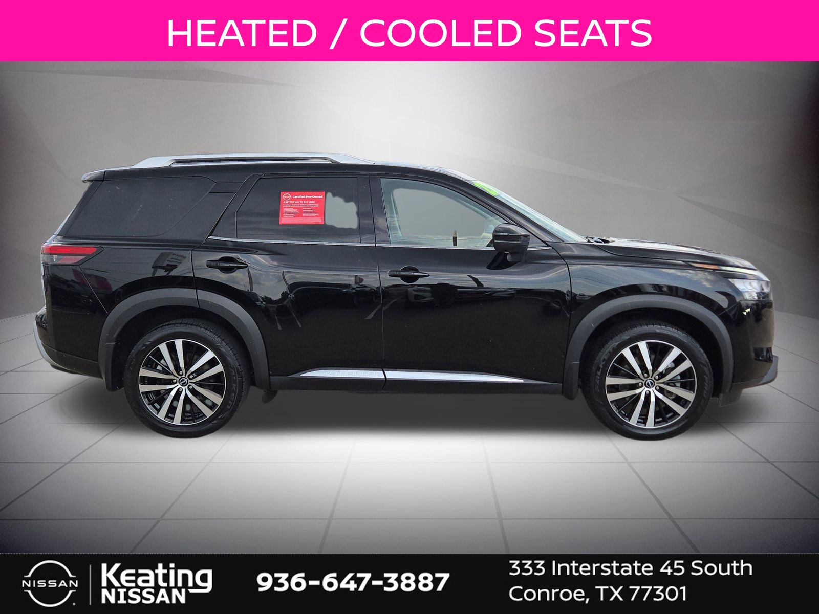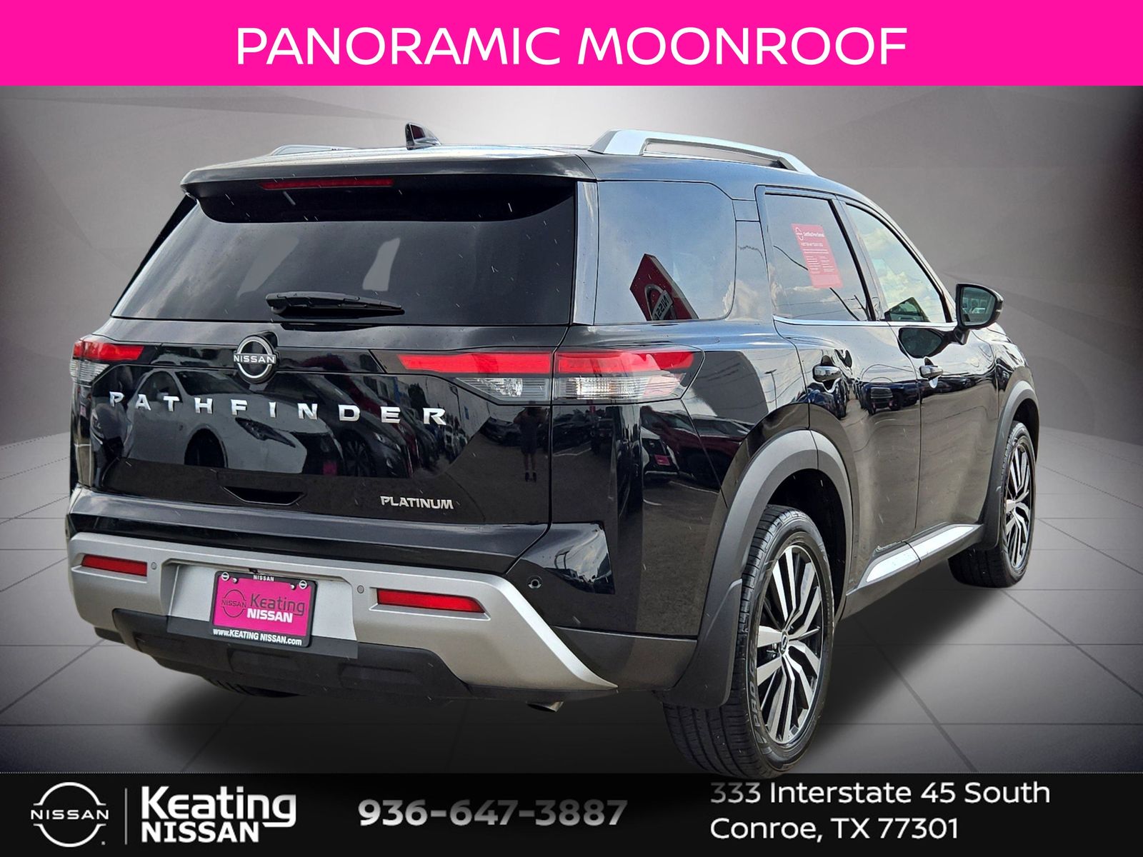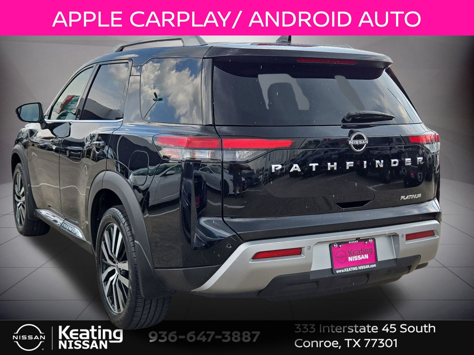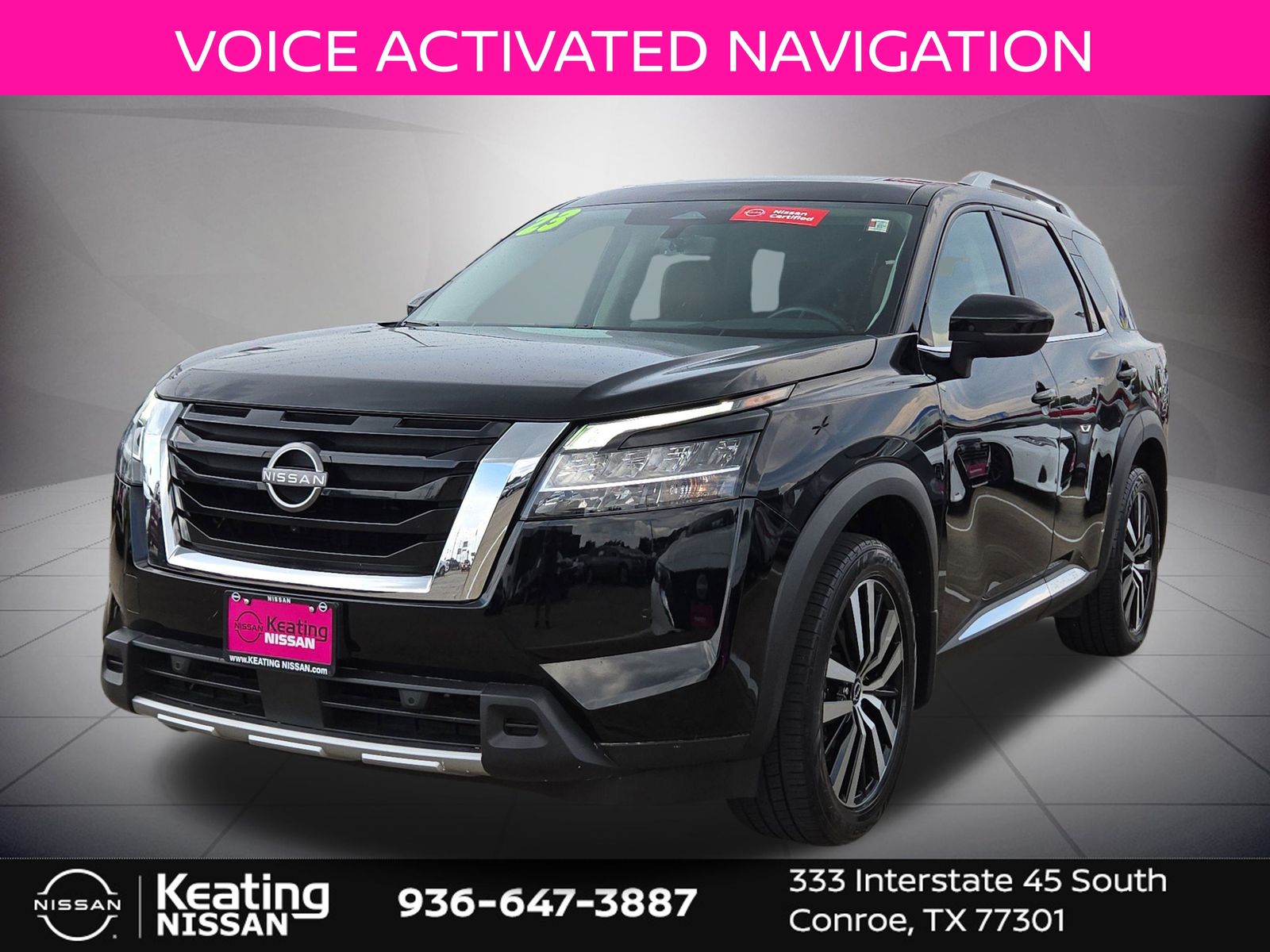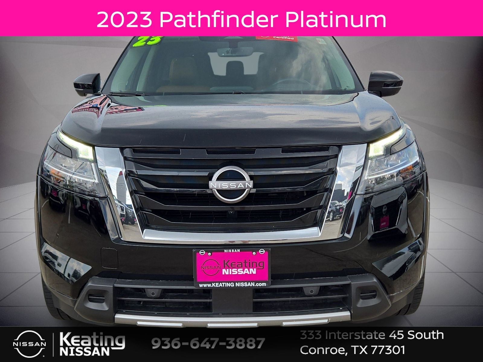 ess Apple CarPlay Integration Android Auto Compatibility Bluetooth Hands-Free Phone & Audio Streaming SiriusXM with 3-Month Trial Access USB-A and USB-C Charging Ports Front and Rear Wi-Fi Hotspot Capability Safety Features: Nissan Safety Shield 360 Suite Intelligent Forward Collision Warning Automatic Emergency Braking with Pedestrian Detection Blind Spot Warning Rear Cross Traffic Alert Intelligent Lane Intervention Intelligent Around View Monitor Traffic Sign Recognition Intelligent Cruise Control Standard Features: 20-inch Machine-Finished Alloy Wheels Quilted Semi-Aniline Leather-Appointed Seats Panoramic Moonroof Heated and Ventilated Front Seats Heated Rear Outboard Seats Tri-Zone Automatic Climate Control Motion-Activated Power Liftgate Digital Dashboard with 12.3-inch Display Second-Row Captains Chairs with Removable Center Console Roof Rails with Cross Bars Why Shop & Buy Your Next Vehicle at Keating Nissan of Conroe, Texas: Large selection of new and pre-owned inventory Competitive, transparent pricing Easy financing options for all credit situations Nissan-certified service technicians Complimentary multi-point inspections State-of-the-art service facility Family-owned with a community-first focus Fast, friendly, and pressure-free sales process Convenient Conroe location serving the greater Houston area Exceptional customer satisfaction backed by glowing reviews Customer Review: "From start to finish, my experience at Keating Nissan was outstanding. The staff truly listened to what I wanted and made the buying process stress-free. I absolutely love my new Pathfinder and wouldnt go anywhere else!" Sarah M., June 25, 2025 Come see this luxurious and capable 2023 Nissan Pathfinder Platinum today and experience why Keating Nissan of Conroe is the trusted destination for drivers across Texas..