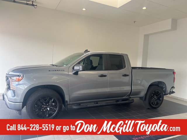 Sterling Gray Metallic 2024 Chevrolet Silverado 1500 Custom 8-Speed Automatic, Black Cloth.