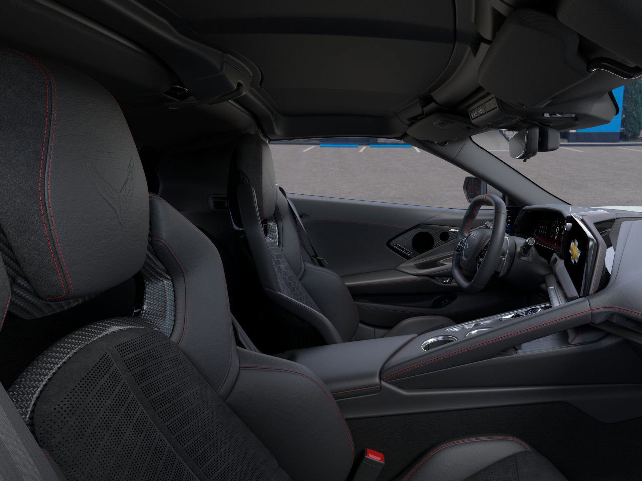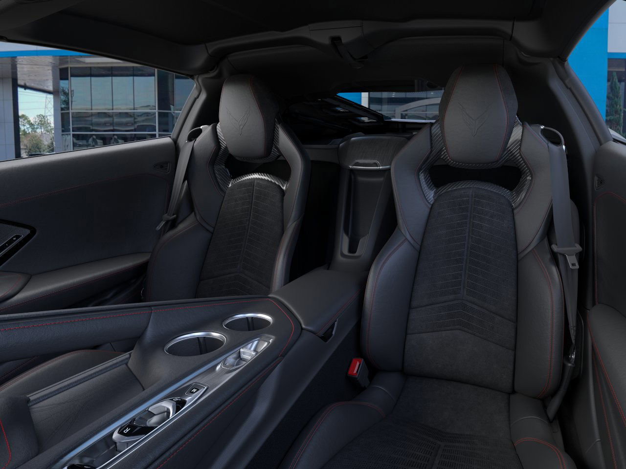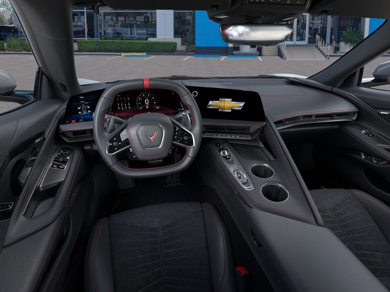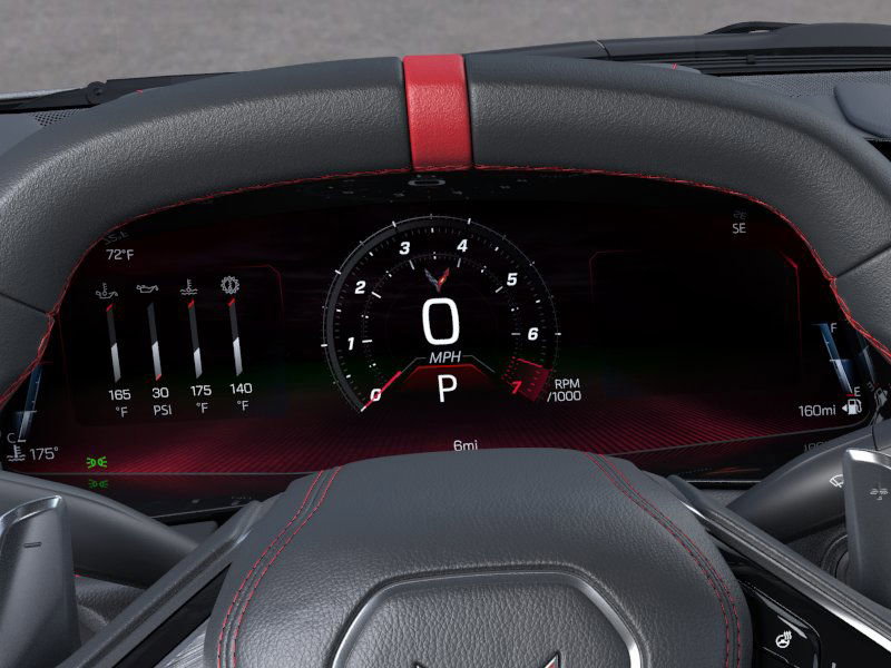 rrors, and power-folding mirrors emphasize both convenience and style. - Targa roof and distinctive design elements such as the dealer-installed black lug nuts and black wheel locks bring a custom touch. Performance and Engine: - Powered by a robust 6.2L V8 DI engine, delivering an exhilarating 490 hp and 465 lb-ft of torque. - Advanced features such as Variable Valve Timing (VVT) and Active Fuel Management (AFM) optimize performance and efficiency. - Equipped with an 8-speed dual-clutch transmission, offering both manual and auto modes for a responsive driving experience. - Performance exhaust system delivers an aggressive sound, adjustable with driver mode selection for a personalized experience. - Rear-wheel drive with locking/limited slip differential ensures remarkable handling and agility. Interior and Comfort: - The Jet Black interior is highlighted by Adrenaline Red custom leather stitching, creating an inviting and luxurious cabin. - GT2 bucket seats provide comfort and support, complete with power adjustments and adjustable lumbar support. - Heated and cooled front seats, along with a heated steering wheel, ensure comfort in varying climates. - Stealth interior trim package features dark finish aluminum trim, adding a sleek and modern vibe to the cockpit. Technology and Features: - Stay connected with smart device integration, Bluetooth connection, WiFi hotspot, and a premium sound system. - A state-of-the-art navigation system and heads-up display keep you informe