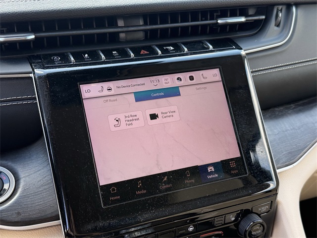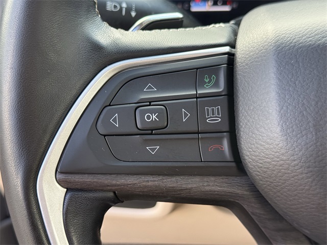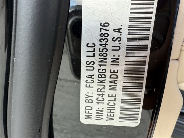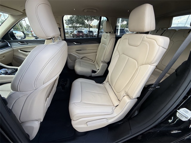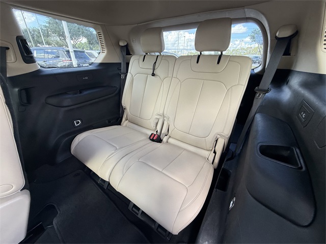 Driver door bin, Driver vanity mirror, Dual front impact airbags, Dual front side impact airbags, Electronic Stability Control, Emergency communication system, For Details, Visit DriveUconnect.com, Four wheel independent suspension, Front anti-roll bar, Front Bucket Seats, Front Center Armrest w/Storage, Front dual zone A/C, Front fog lights, Front reading lights, Fully automatic headlights, Garage door transmitter, Global Telematics Box Module (TBM), Google Android Auto, GPS Antenna Input, Heated door mirrors, Heated front seats, Heated rear seats, Heated steering wheel, Illuminated entry, Integrated Center Stack Radio, Integrated Voice Command w/Bluetooth, Knee airbag, Leather steering wheel, Low tire pressure warning, Manual Fold Seatbacks, Memory seat, Normal Duty Suspension, Occupant sensing airbag, Outside temperature display, Overhead airbag, Overhead console, Panic alarm, ParkView Rear Back-Up Camera, Passenger door bin, Passenger vanity mirror, Power door mirrors, Power driver seat, Power Liftgate, Power passenger seat, Quick Order Package 22E, Radio: Uconnect 5 w/8.4" Display, Rear anti-roll bar, Rear reading lights, Rear window wiper, Reclining 3rd row seat, Remote keyless entry, Security system, SiriusXM Satellite Radio, SiriusXM w/360L, Speed control, Speed-Sensitive Wipers, Split folding rear seat, Spoiler, Steering wheel mounted audio controls, Tachometer, Telescoping steering wheel, Tilt steering wheel, Traction control, Turn signal indicator mirrors, USB Host Flip, Variably intermittent wipers, Wheels: 18" x 8.0" Fully Painted Aluminum 2. New Price! CARFAX One-Owner.