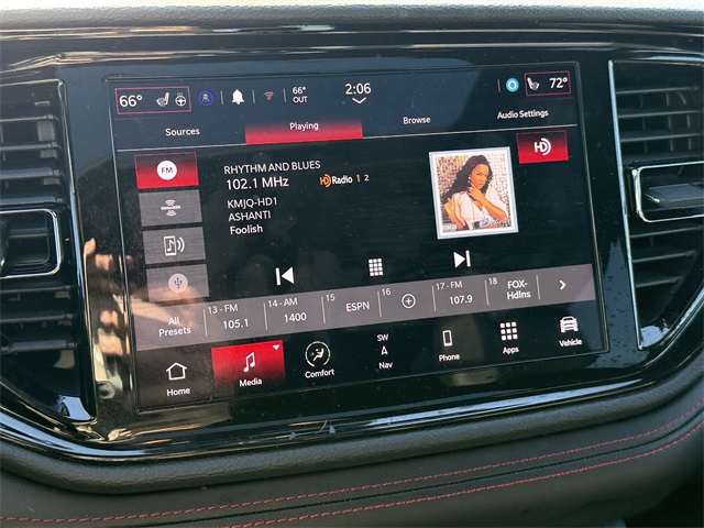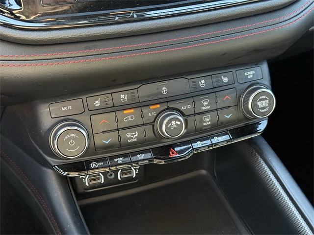 or Driver Mirror, Auto-dimming Rear-View mirror, Auto-leveling suspension, Automatic temperature control, Black Roof Rails, Blind Spot w/Trailer Detection, Brake assist, Bumpers: body-color, Class IV Receiver Hitch, Cloth Bucket Seats w/Shift Insert, Compass, Connected Travel & Traffic Services, Delay-off headlights, Disassociated Touchscreen Display, Driver door bin, Driver vanity mirror, Dual front impact airbags, Dual front side impact airbags, Dual Remote USB Port - Charge Only, Electronic Stability Control, Exterior Mirrors w/Heating Element, Exterior Mirrors w/Memory, Exterior Mirrors w/Supplemental Signals, Floor Console w/Leather Armrest, For Details, Visit DriveUconnect.com, Four wheel independent suspension, Front anti-roll bar, Front Bucket Seats, Front Center Armrest w/Storage, Front dual zone A/C, Front License Plate Bracket, Front reading lights, Full Speed Forward Collision Warning Plus, Fully automatic headlights, Garage door transmitter, Global Telematics Box Module (TBM), Gloss Black Exterior Mirrors, Google Android Auto, GPS Antenna Input, GPS Navigation, HD Radio, Heated door mirrors, Heated front seats, Heated Second Row Seats, Heated steering wheel, Heavy-Duty Engine Cooling, Integrated Center Stack Radio, Integrated Roof Rail Crossbars, Integrated Voice Command w/Bluetooth, Knee airbag, Leather Trimmed Bucket Seats, Leather Wrapped Door Panels, LED Auxiliary Low Beam & Turn Signal, Low tire pressure warning, Occupant sensing airbag, Overhead airbag, Overhead console, Panic alarm, ParkView Rear Back-Up Camera, Power 6x9 Multi-Function Foldaway Mirrors, Power 8-Way Driver Memory 8-Way Passenger Seats, Power door mirrors, Power driver seat, Power Driver/Passenger 4-Way Lumbar Adjust, Power Liftgate, Power Sunroof, Power Tilt & Telescopic Steering Column, Quick Order Package 2BG GT Plus, Radio: Uconnect 5 Nav w/10.1" Display, Radio/Driver Seat/Mirrors Memory, Rear anti-roll bar, Rear Load Leveling Suspension, Rear reading lights, Rear seat center armrest, Rear window wiper, Red Accent Stitching, Remote keyless entry, SiriusXM Guardian - Included Trial (B), SiriusXM w/360L, Speed control, Speed-sensing steering, Speed-Sensitive Wipers, Split folding rear seat, Spoiler, Sport steering wheel, Steering wheel mounted audio controls, Tachometer, Telescoping steering wheel, Traction control, Trailer Brake Control, USB Host Flip, Variably intermittent wipers, Ventilated Front Seats, Wheels: 20" x 8.0" Fine Silver. CARFAX One-Owner. Priced below KBB Fair Purchase Price!