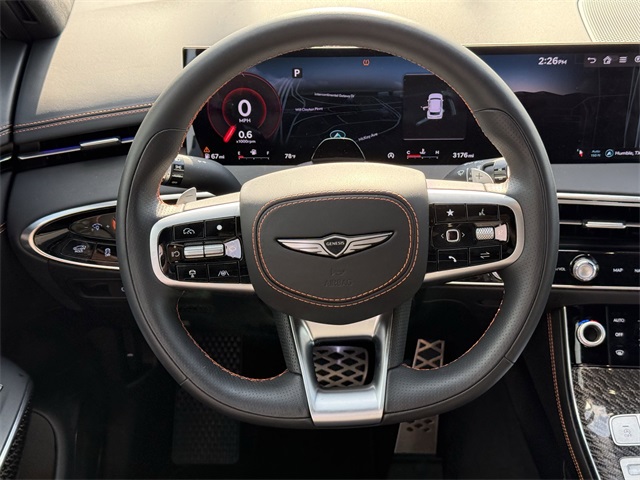 ags, Dual front side impact airbags, Electronic Stability Control, Emergency communication system: Genesis Connected Services, Exterior Parking Camera Rear, First Aid Kit, Four wheel independent suspension, Front anti-roll bar, Front Bucket Seats, Front Center Armrest w/Storage, Front dual zone A/C, Front reading lights, Fully automatic headlights, Garage door transmitter: HomeLink, Heads-Up Display, Heated and Ventilated Front Bucket Seats, Heated door mirrors, Heated front seats, Heated rear seats, Heated steering wheel, Knee airbag, Leather steering wheel, Low tire pressure warning, Memory seat, Nappa Leather Seating Surfaces, Navigation System, NFC Key Card, Occupant sensing airbag, Option Group 01, Outside temperature display, Overhead airbag, Overhead console, Panic alarm, Passenger door bin, Passenger vanity mirror, Power door mirrors, Power driver seat, Power Liftgate, Power moonroof, Power passenger seat, Radio: 14.5" Navigation System with AM/FM/HD, Rain sensing wipers, Rear anti-roll bar, Remote keyless entry, Security system, Speed control, Speed-sensing steering, Split folding rear seat, Spoiler, Steering wheel memory, Steering wheel mounted audio controls, Telescoping steering wheel, Traction control, Turn signal indicator mirrors, Variably intermittent wipers, Ventilated front seats, Wheels: 21" Dark Sputtering Alloy. Priced below KBB Fair Purchase Price!