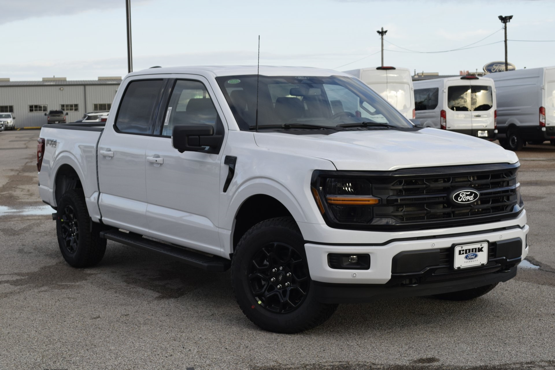 This 2025 Ford F-150 XLT in Oxford White comes with the following features: 5.0L V8 10-Speed Automatic 4WD Equipment Group 302A Mid (360 Degree Camera, 400W Cab & Bed Outlets, 6" Angular Bright Anodized Step Bar, Adaptive Cruise Control w/Stop & Go, Auto-Dimming Rear-View Mirror, Black Painted Grille w/Chrome Center Bar, Chrome Door & Tailgate Handles, Chrome Single-Tip Exhaust, Cloth 40/Console/40 Front Seats, Connec